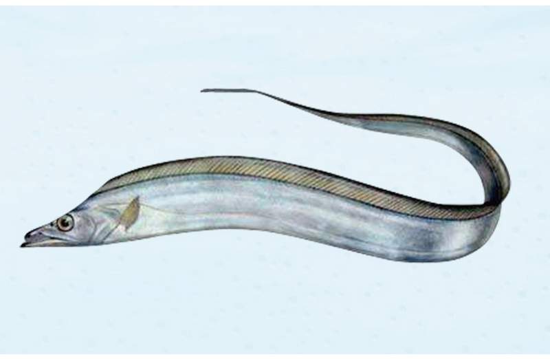 帶魚屬于脊索動物門下脊椎動物亞門中的硬骨魚綱鱸形目帶魚科。又叫、裙帶、肥帶、油帶、牙帶魚等,性兇猛。青島、日照黃海沿岸城市稱鱽魚。帶魚的體型側扁如帶,呈銀灰色,背鰭及胸鰭淺灰色,帶有很細小的斑點,尾巴呈黑色,帶魚頭尖口大,至尾部逐漸變細,全長1米左右。性兇猛,主要以毛蝦、烏賊為食。